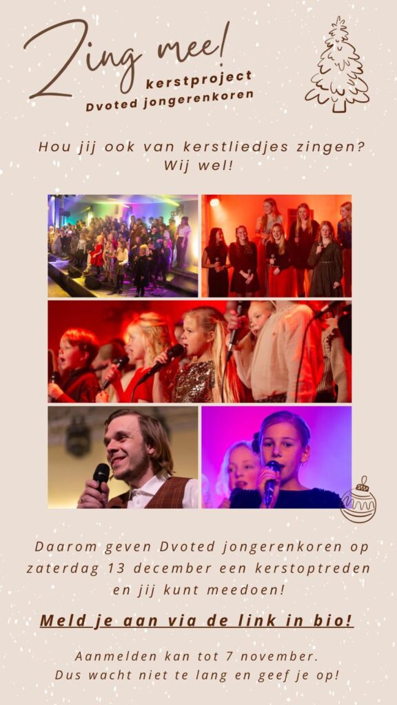 Hou jij ook van kerstliedjes zingen? Wij wel! Daarom geven de DVoted jongerenkoren op zaterdag 13 december een bijzonder kerstoptreden en jij kunt meedoen!